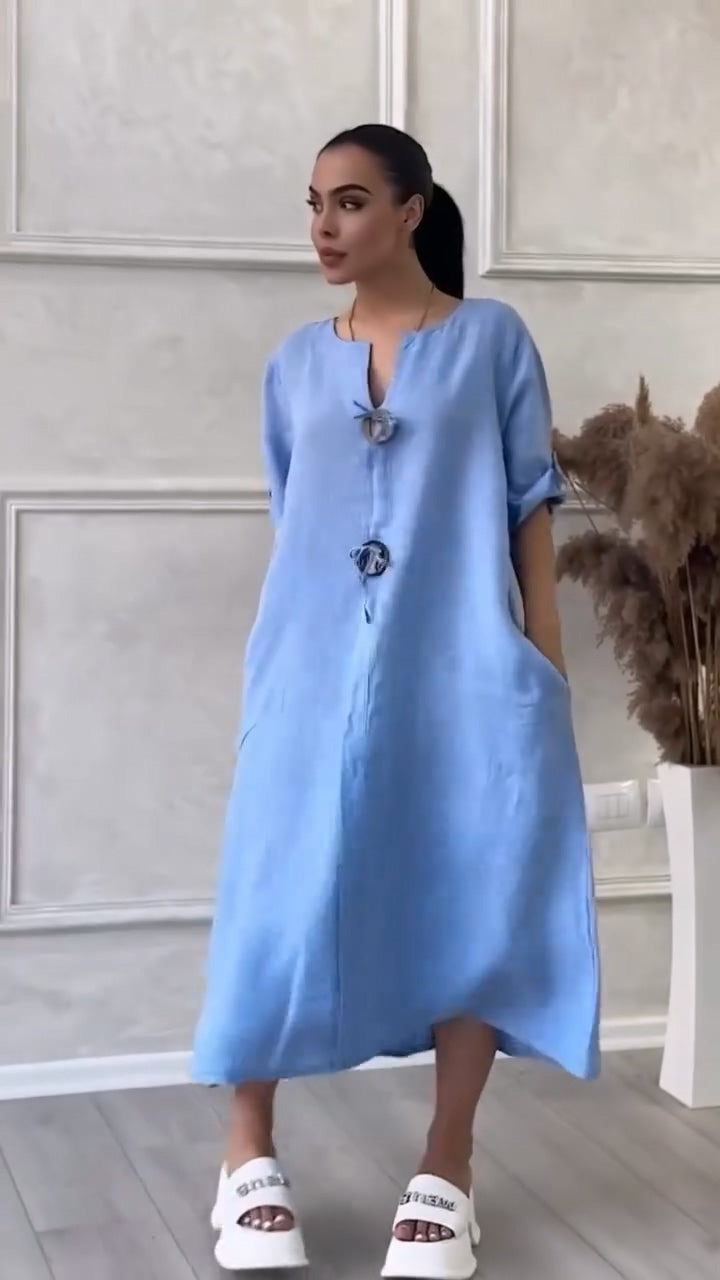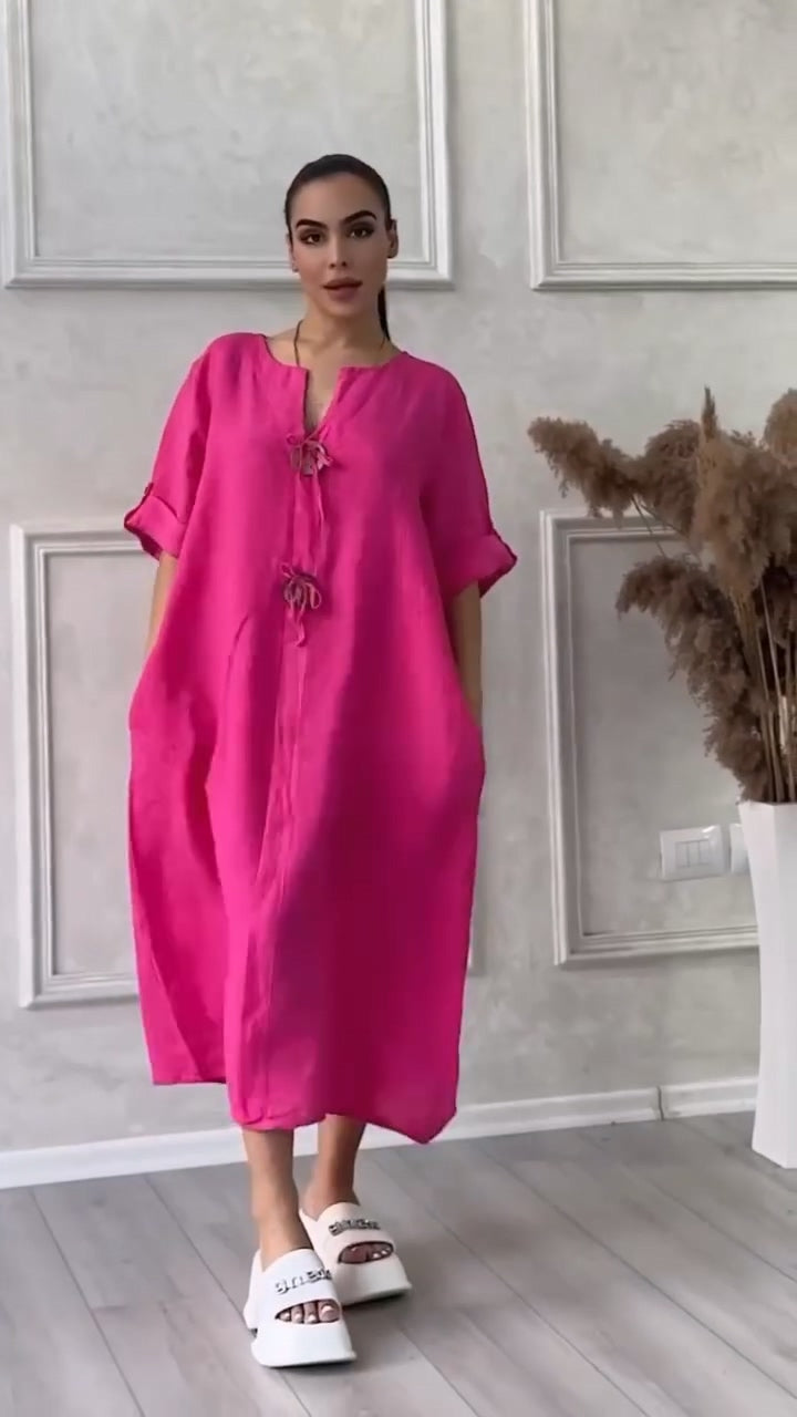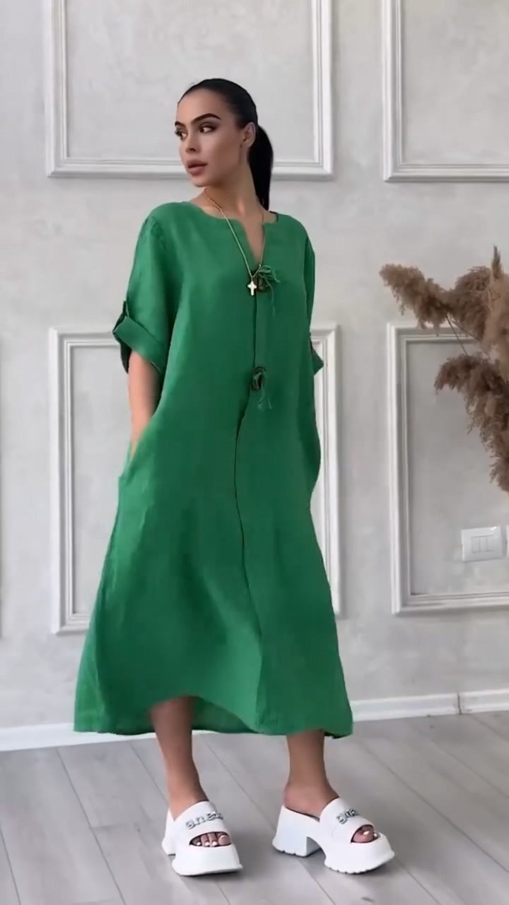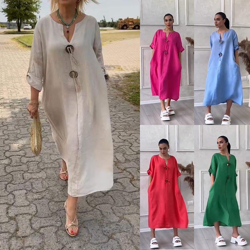 【M-4XL】👗Bawełniana i lniana sukienka z dekoltem V