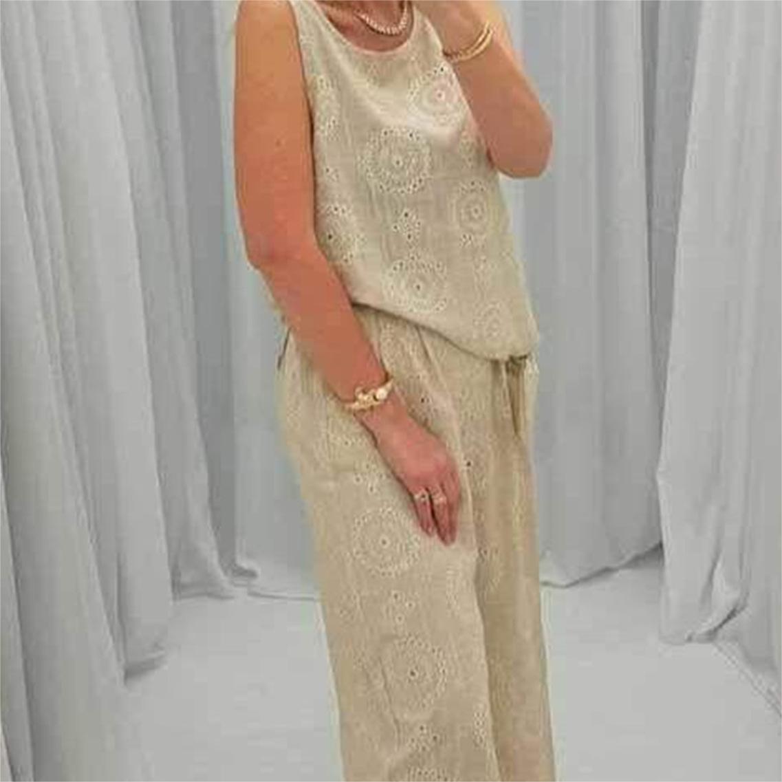 Pakiet zawiera:1*Casualowy top bez rękawów z szerokimi nogawkami 2-częściowy zestaw