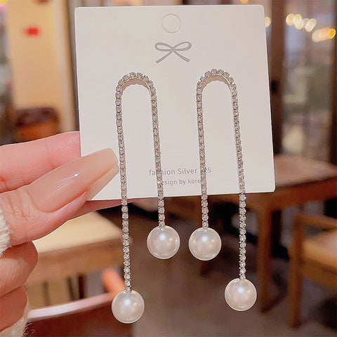 1 * Pełne kolczyki z frędzlami z imitacji pereł wysadzane kryształkami górskimi
