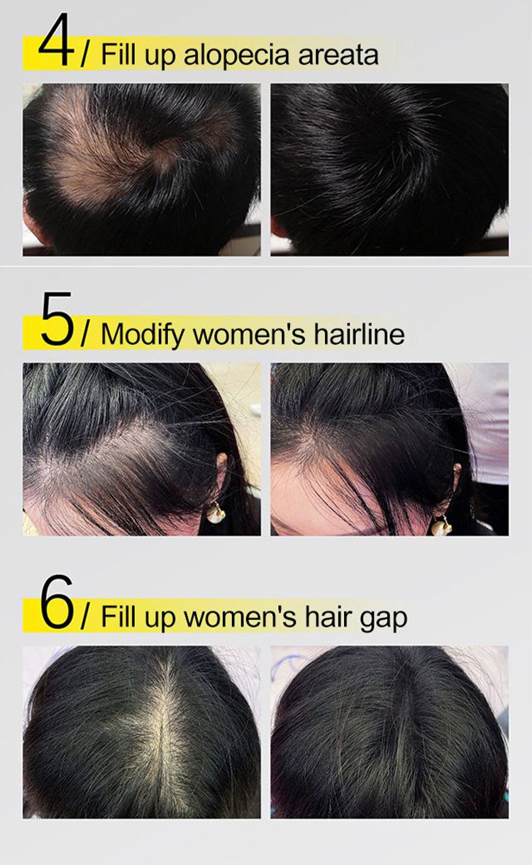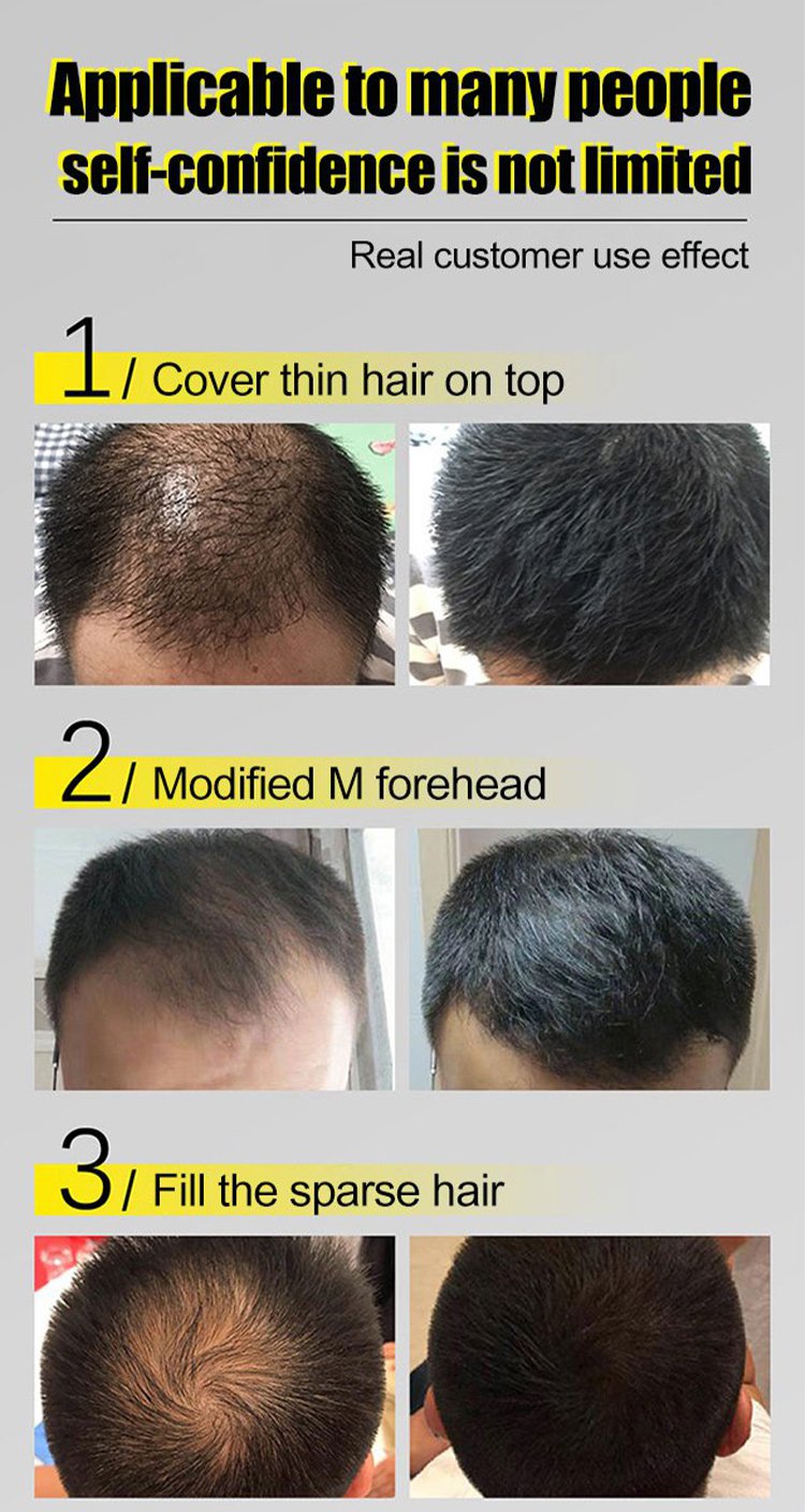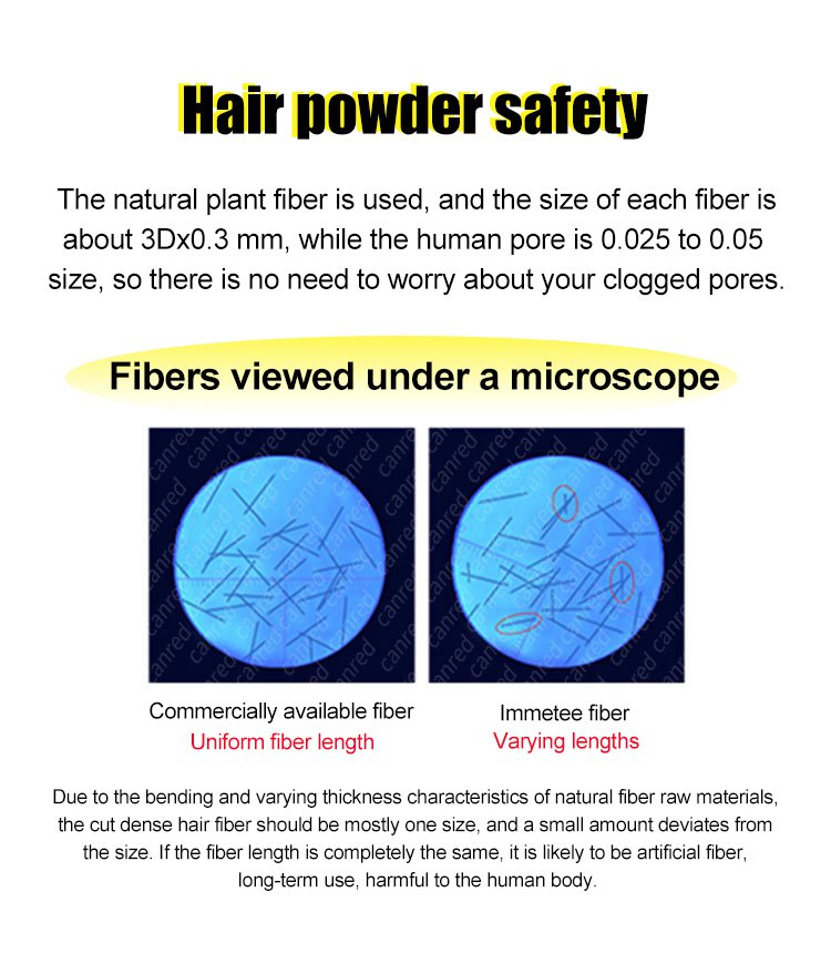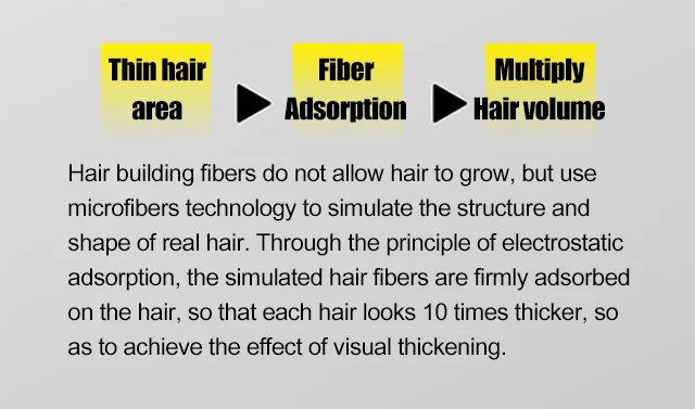 Odporne na pot włókno w proszku jest wykonane z barwionego białka keratynowego, które przykleja się i niewykrywalnie łączy z istniejącymi pasmami włosów.