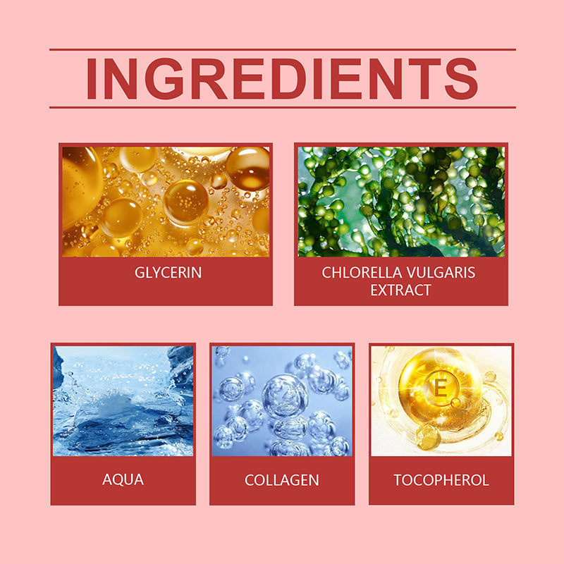 Składniki: woda, gliceryna, ekstrakt z chlorelli, kolagen, witamina E.