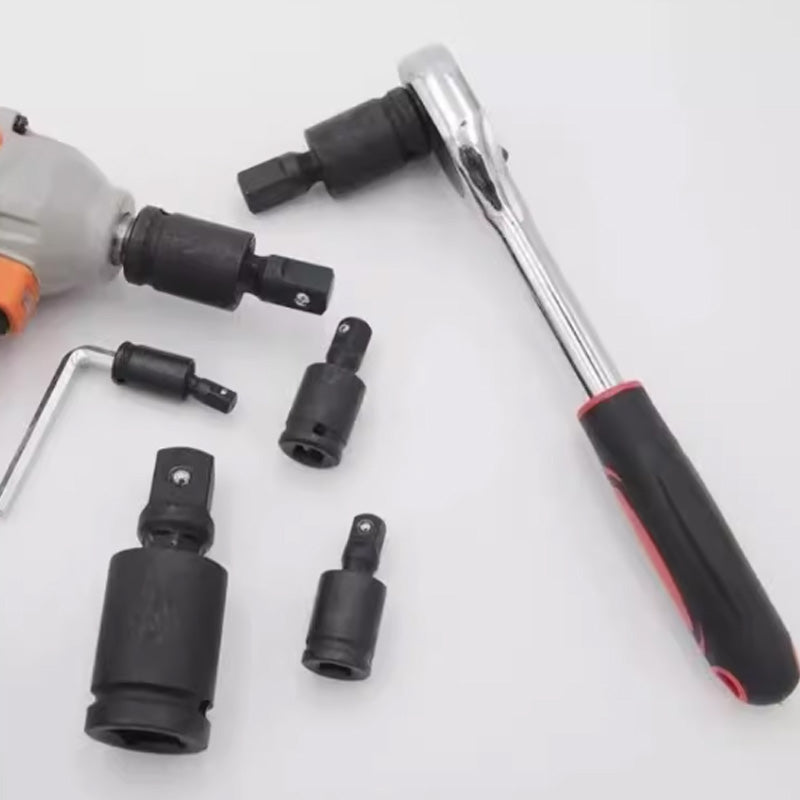 [ELASTYCZNOŚĆ]- Osiąga płynny obrót o 360 stopni, ultracienki uniwersalny przegub udarowy może dotrzeć do wszystkich elementów złącznych, sprężynowa konstrukcja kulki pozycjonującej, antypoślizgowa i zapobiegająca odłączeniu, zapewniająca, że uniwersalny przegub jest mocno zablokowany na narzędziu nawet w trudnych miejscach.