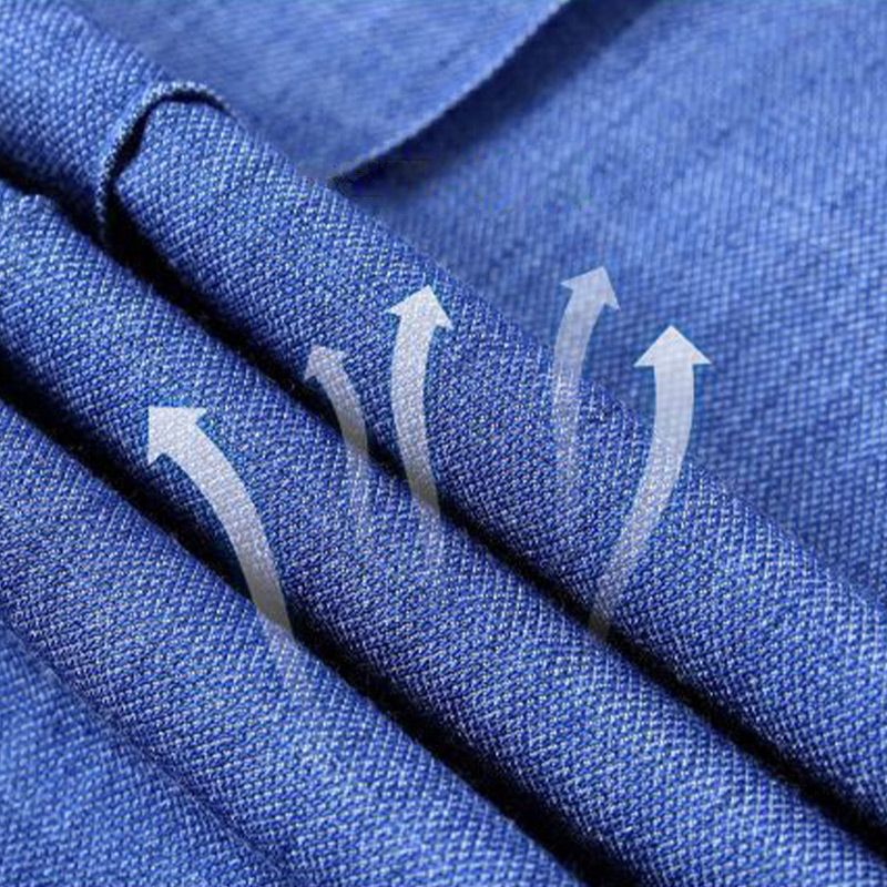 Materiał jest gładki, antystatyczny, oddychający, chłodny i przyjazny dla skóry. Materiał odporny na zagniecenia dobrze się trzyma nawet po długim noszeniu.