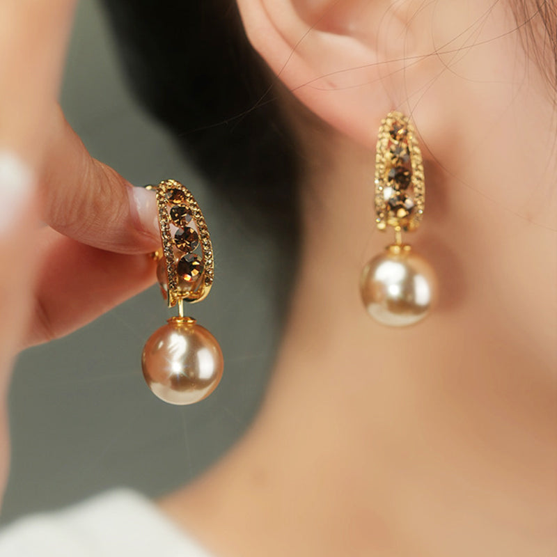 Pakiet zawiera: 1 * Eleganckie damskie kolczyki z cyrkoniami z kroplą sztucznej perły