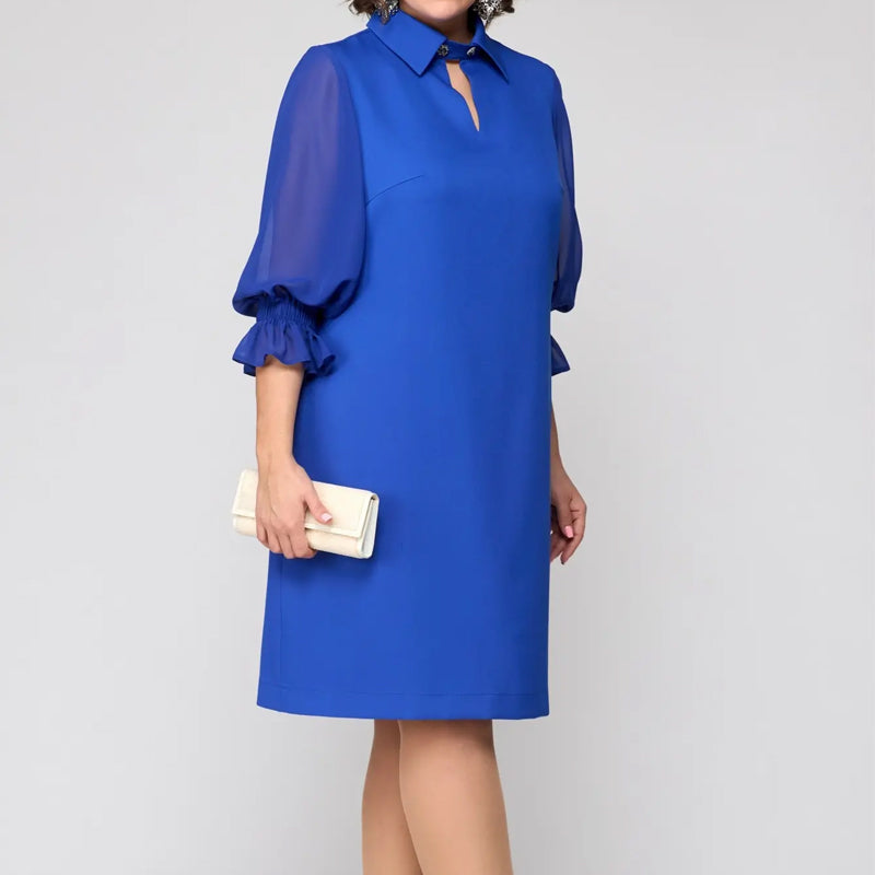 MODNE RĘKAWY LANTERNOWE: Przyciągające wzrok rękawy latarniowe o długości 3/4 dodają sukience zabawnego, a jednocześnie wyrafinowanego uroku, podkreślając jej modny wygląd.